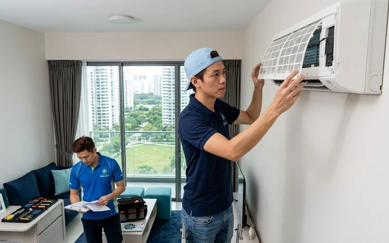 The combination of constant condensation from Singapore’s 70-90% humidity and biological growth creates algae, mould, and the “jelly” substance that blocks drain lines. Fujitsu units in HDB flats running continuously are particularly prone during the Northeast Monsoon season (November to March) when humidity peaks. We flush and treat drain lines during every quarterly service to prevent water leaks.